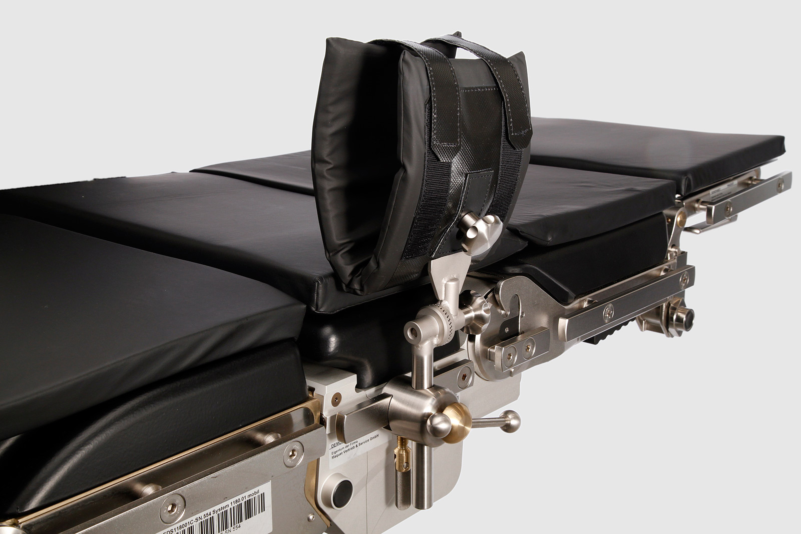 höhen- und radial zur Längsachse der OP-Tisch-Lagerfläche verstellbar