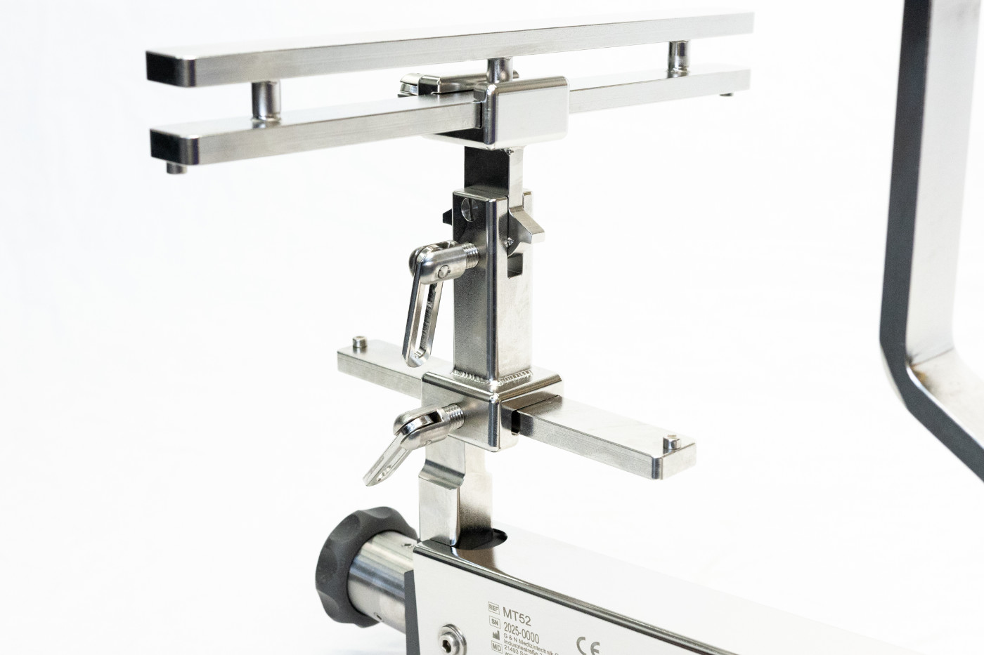 - Grundkörper mit Halter zur Anbringung an allen OP-Tischen mit Vierkantaufnahme 20x20 mm unterhalb der Rückenplatte